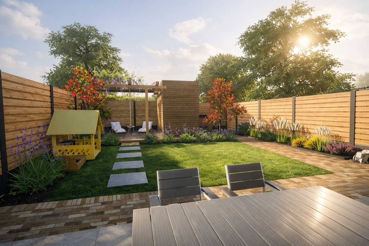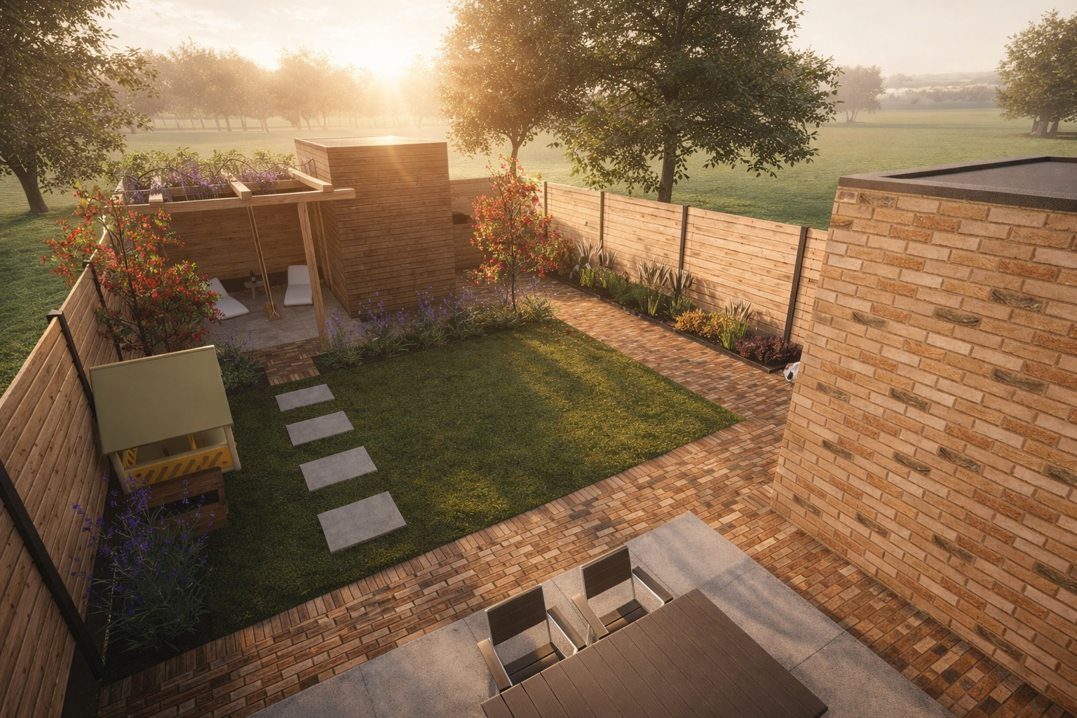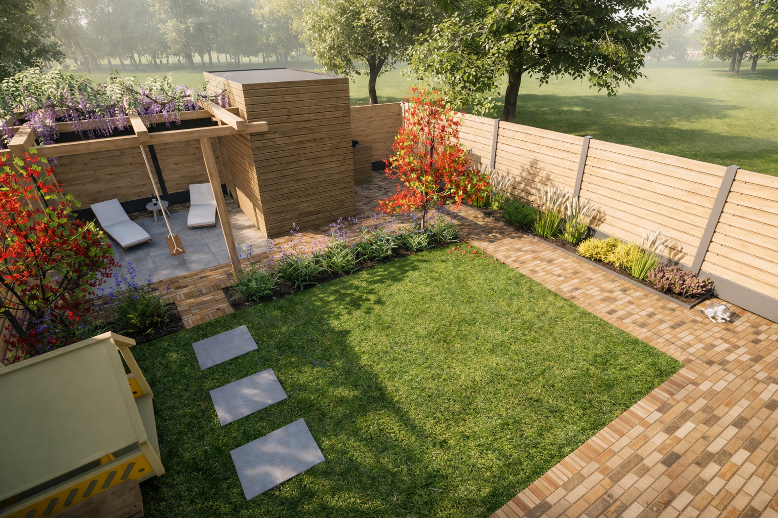 Nieuwe bewoners van Lage Heide in Dommelen vroegen Versleeuwen Design om hun tuin vorm te geven. Met veel enthousiasme heb ik een doordacht ontwerp gemaakt en dit realistisch gevisualiseerd, zodat zij hun toekomstige tuin al konden beleven vóór de realisatie.