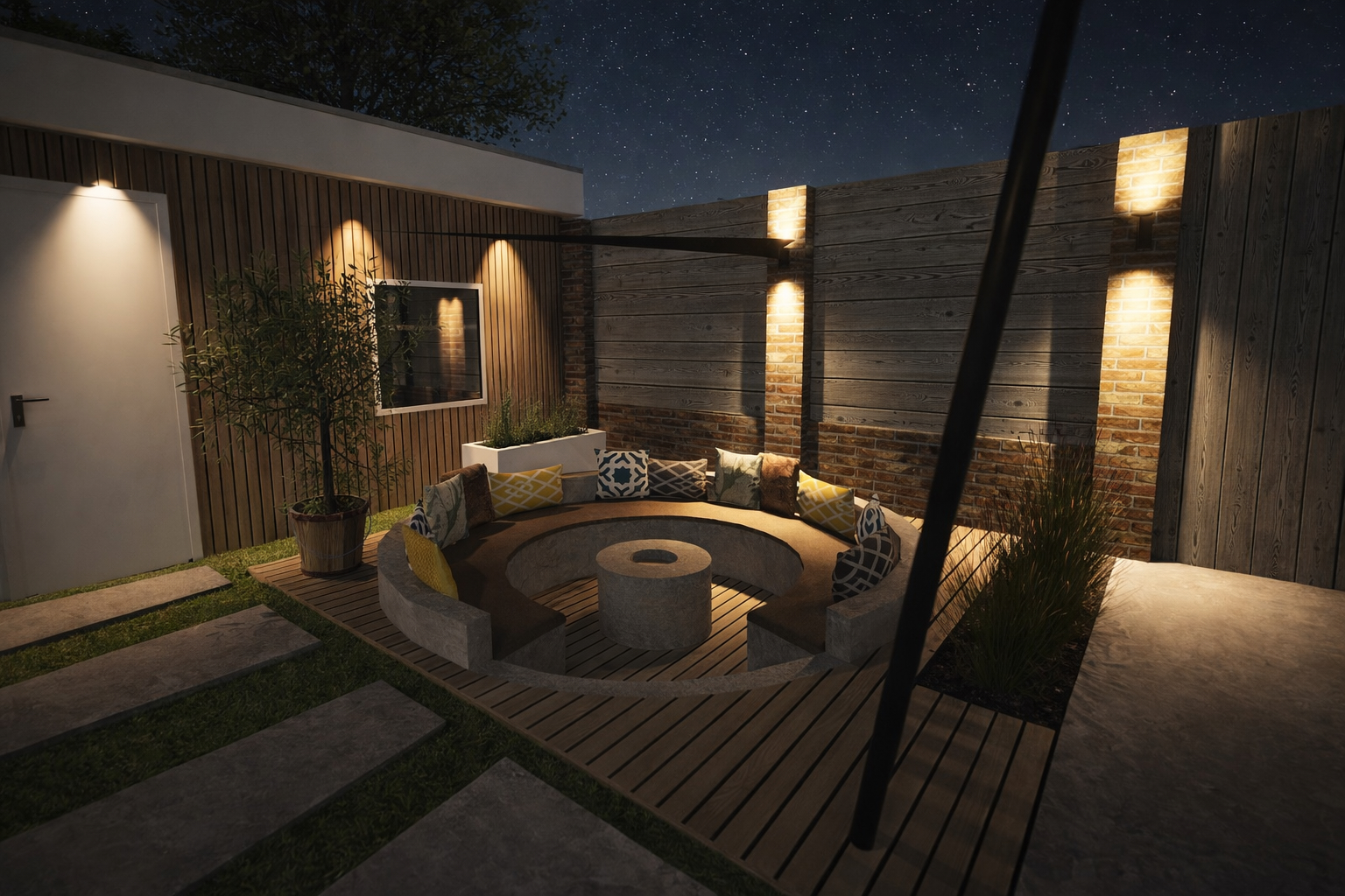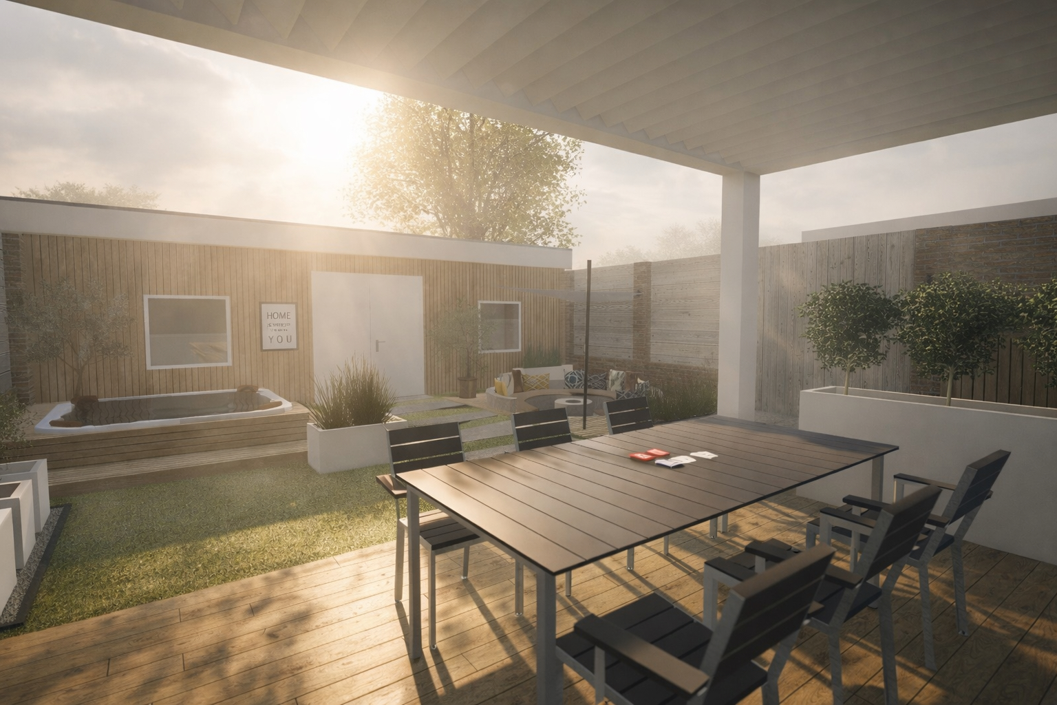 Zo zie je maar: ook een middelgrote tuin kan verrassend uitpakken! Voor een gezin uit Berkel-Enschot heb ik een veelzijdig en luxe 3D-tuinontwerp gerealiseerd, volledig afgestemd op hun wensen en leefstijl.